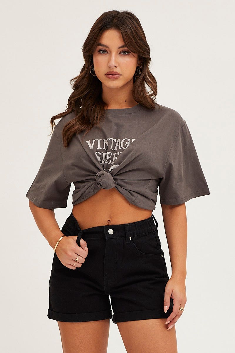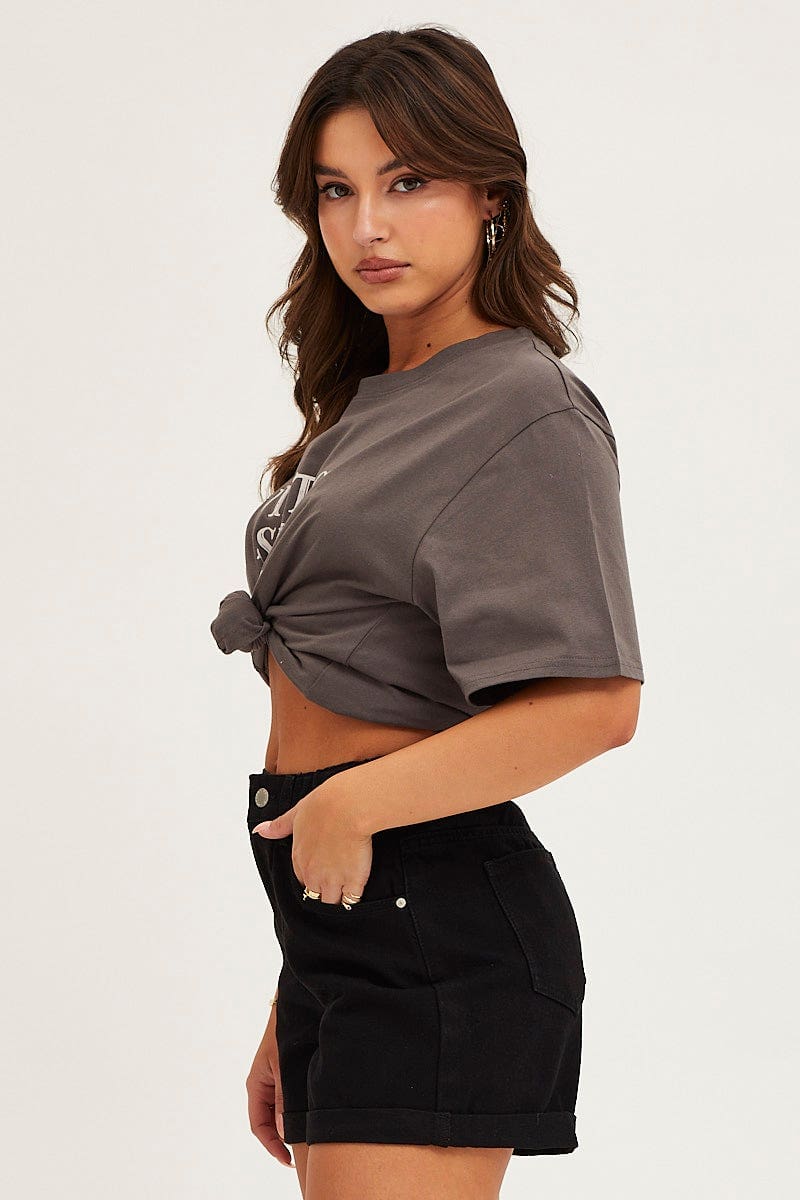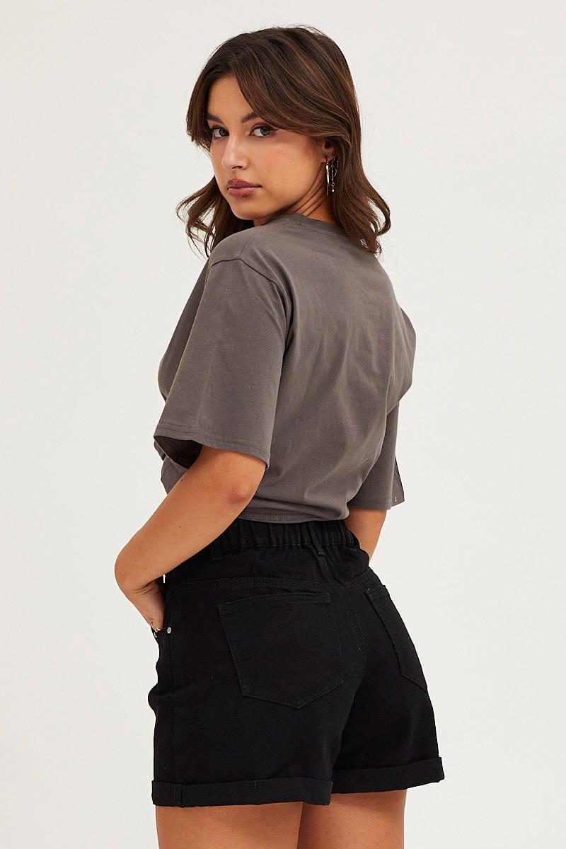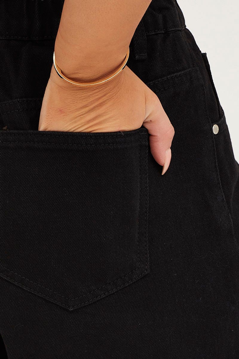 Black High Rise Relaxed Denim Shorts