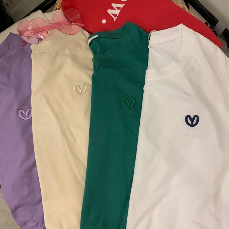 Be the first to review “Summer Loose Round Neck T-Shirt Simple Embroidery Casual Versatile Short Sleeved Tees Women’s Cozy Cotton Solid Color Top”