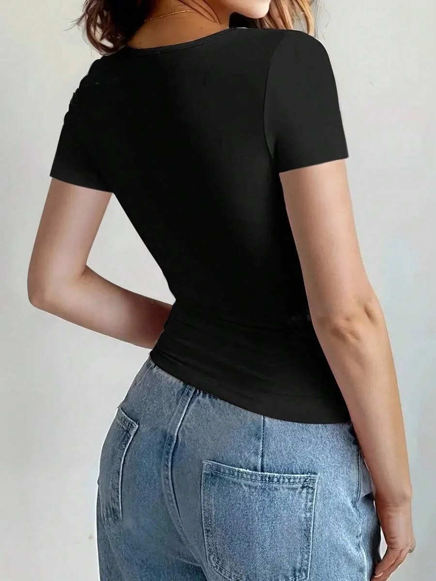 Be the first to review “Womens Basic T-Shirts Scoop Neck Short Sleeve Crop Tops Cute Summer Tops Slim Fit Tees Y2k Clothing 2024”